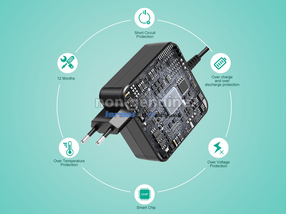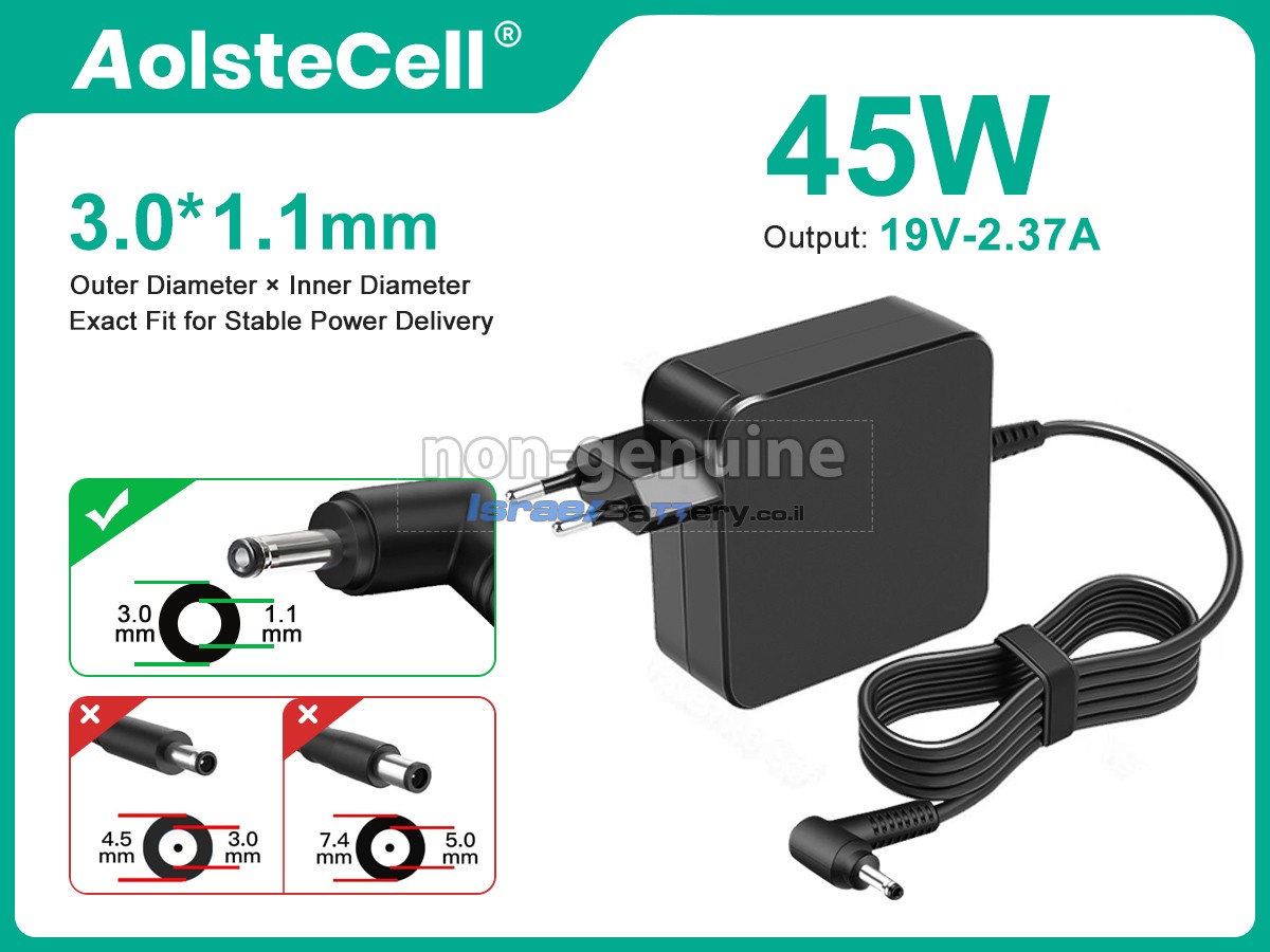 מתאם החשמל החלופי Acer 45W 19V-2.37A 100-240V~1.6A 50/60HZ נבנה בקפידה עם סוללת A+ ברמה עליונה ושבב בקר חכם של TI מתקדם, כדי לספק ביצועים מעולים ומהירות טעינה מהירה. העמידות השתפרה באופן משמעותי, תוחלת החיים ארוכה יותר, מה שמבטיח שהמכשיר שלך תמיד יישאר במצב עבודה מיטבי. מארז המתאם עשוי מחומר סגסוגת ABS+PC עמיד בחום ושחיקה, חזק ומתאים באופן מושלם לדגם המכשיר שלך, ומבטיח התאמה חלקה.