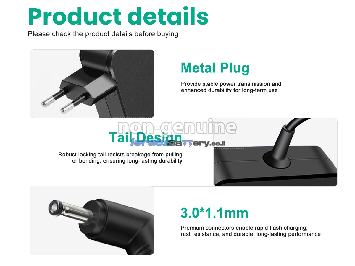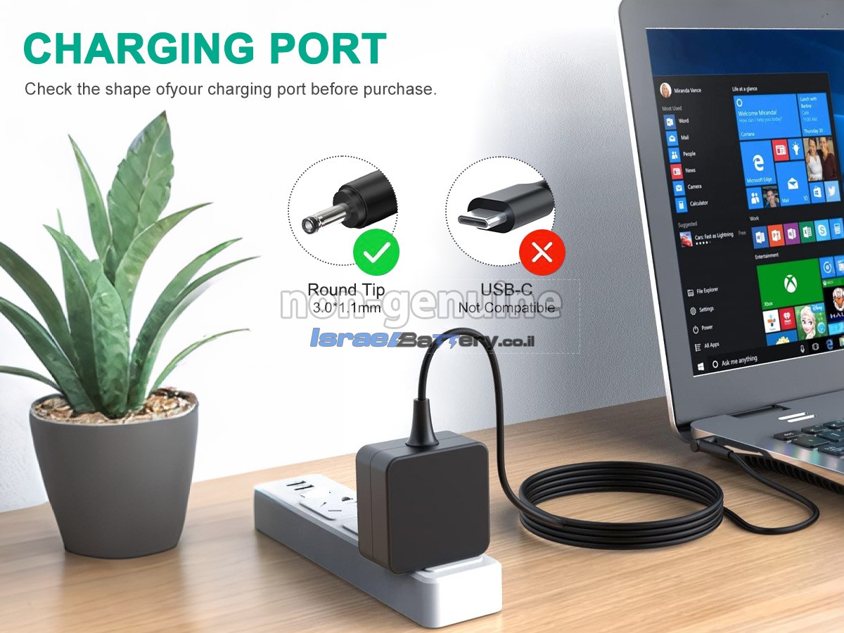 כדי לוודא שהמתאם הזה תואם למכשיר שלך, יש לבדוק אם המתח (V), הזרם (A) וגודל המחבר תואמים את המפרט של המתאם שלנו. בדרך כלל, על המתאם יופיעו פרמטרי היציאה, כגון 19V-3.42A.