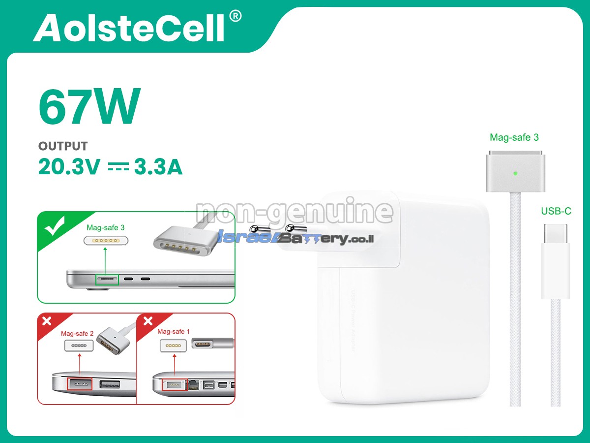 כדי לוודא שהמתאם הזה תואם למכשיר שלך, יש לבדוק אם המתח (V), הזרם (A) וגודל המחבר תואמים את המפרט של המתאם שלנו. בדרך כלל, על המתאם יופיעו פרמטרי היציאה, כגון 20.3V-3.3A.