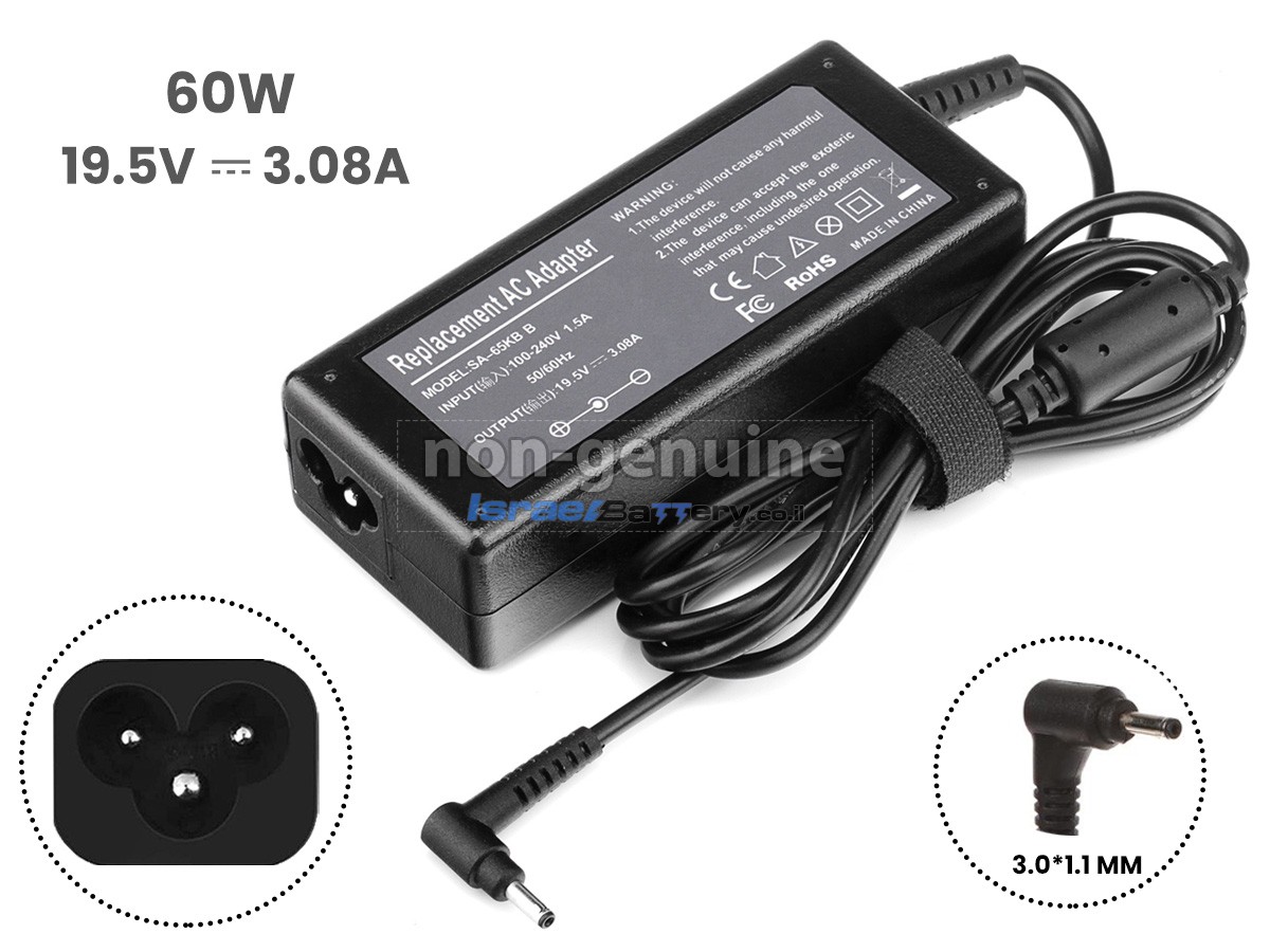 מתאם החשמל החלופי Asus 19.5V 3.08A 60W 3.0*1.1MM נבנה בקפידה עם סוללת A+ ברמה עליונה ושבב בקר חכם של TI מתקדם, כדי לספק ביצועים מעולים ומהירות טעינה מהירה. העמידות השתפרה באופן משמעותי, תוחלת החיים ארוכה יותר, מה שמבטיח שהמכשיר שלך תמיד יישאר במצב עבודה מיטבי. מארז המתאם עשוי מחומר סגסוגת ABS+PC עמיד בחום ושחיקה, חזק ומתאים באופן מושלם לדגם המכשיר שלך, ומבטיח התאמה חלקה.