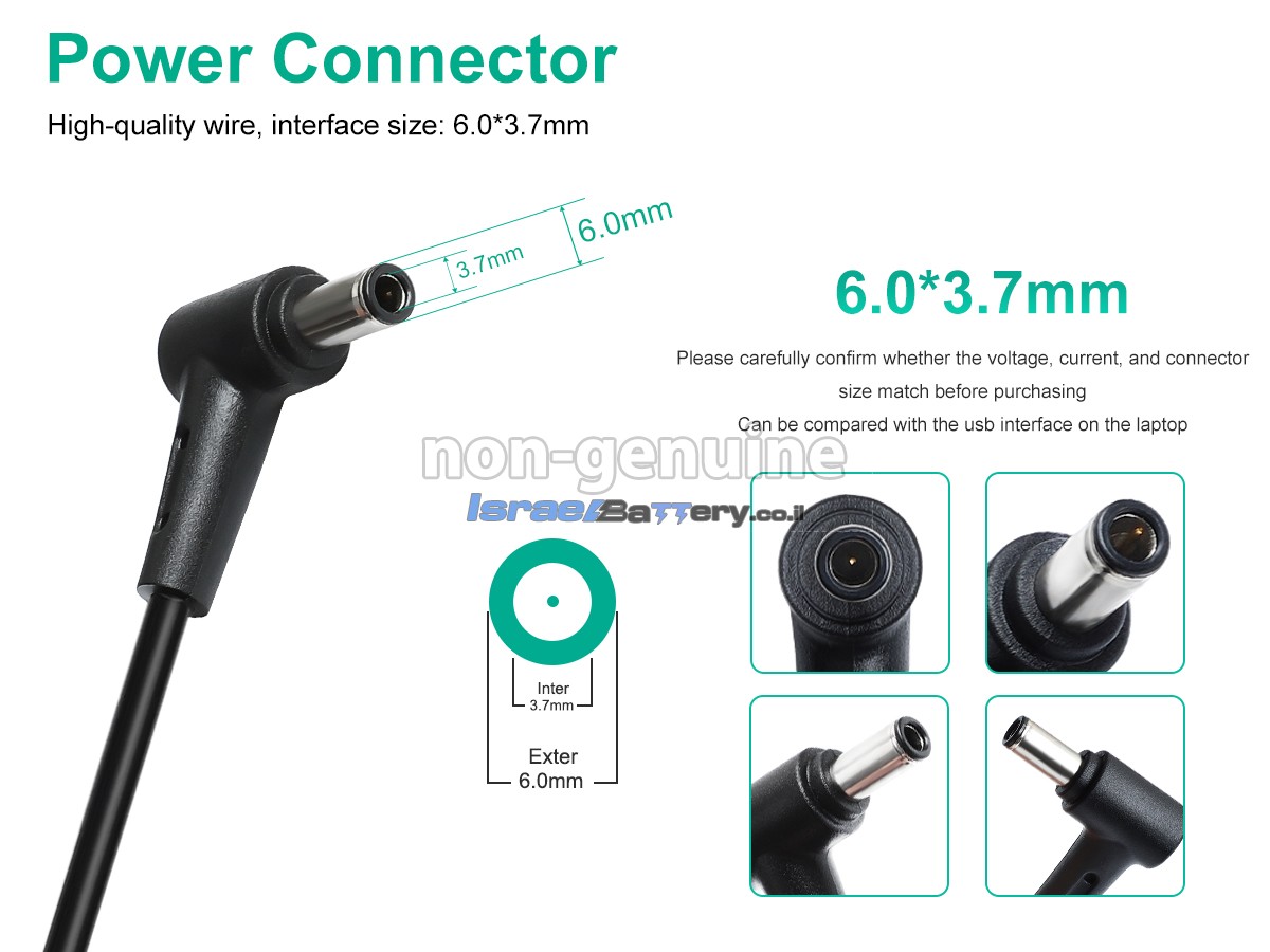 כדי לוודא שהמתאם הזה תואם למכשיר שלך, יש לבדוק אם המתח (V), הזרם (A) וגודל המחבר תואמים את המפרט של המתאם שלנו. בדרך כלל, על המתאם יופיעו פרמטרי היציאה, כגון 19.5V-11.8A.