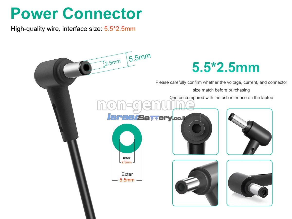 כדי לוודא שהמתאם הזה תואם למכשיר שלך, יש לבדוק אם המתח (V), הזרם (A) וגודל המחבר תואמים את המפרט של המתאם שלנו. בדרך כלל, על המתאם יופיעו פרמטרי היציאה, כגון 20V-14A.