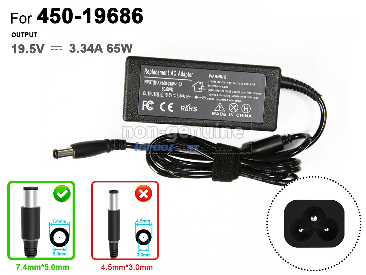 כדי לוודא שהמתאם הזה תואם למכשיר שלך, יש לבדוק אם המתח (V), הזרם (A) וגודל המחבר תואמים את המפרט של המתאם שלנו. בדרך כלל, על המתאם יופיעו פרמטרי היציאה, כגון 19.5V-3.34A.