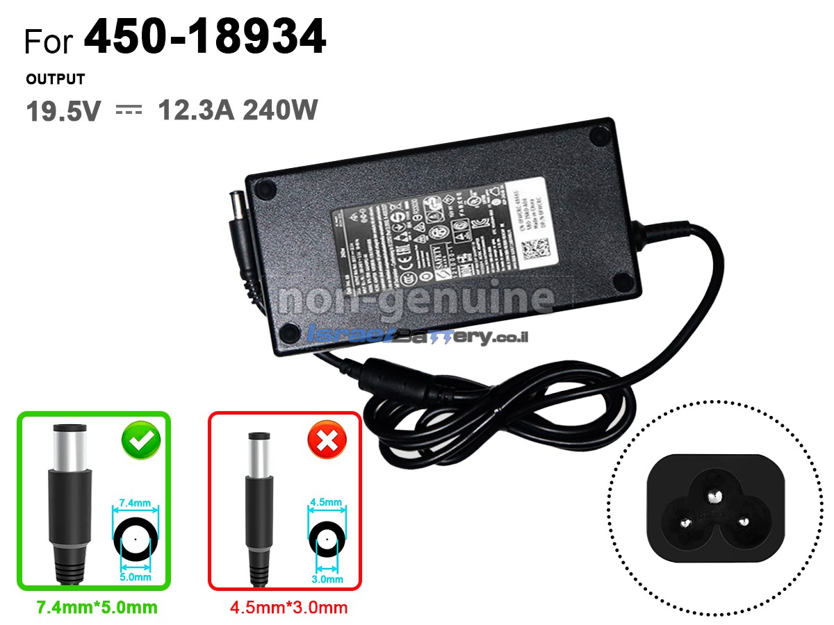כדי לוודא שהמתאם הזה תואם למכשיר שלך, יש לבדוק אם המתח (V), הזרם (A) וגודל המחבר תואמים את המפרט של המתאם שלנו. בדרך כלל, על המתאם יופיעו פרמטרי היציאה, כגון 19.5V-12.3A.
