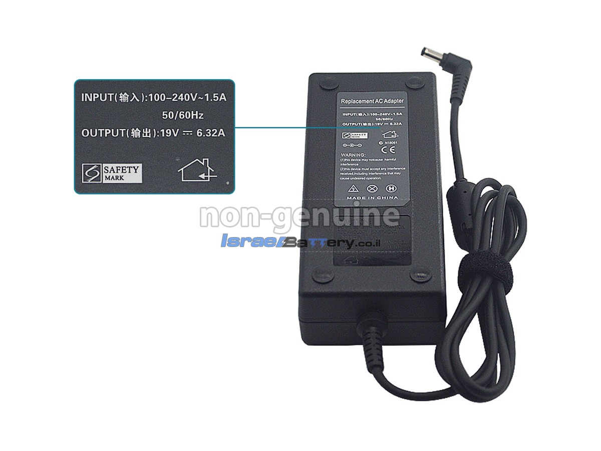 כדי לוודא שהמתאם הזה תואם למכשיר שלך, יש לבדוק אם המתח (V), הזרם (A) וגודל המחבר תואמים את המפרט של המתאם שלנו. בדרך כלל, על המתאם יופיעו פרמטרי היציאה, כגון 19V-6.32A.