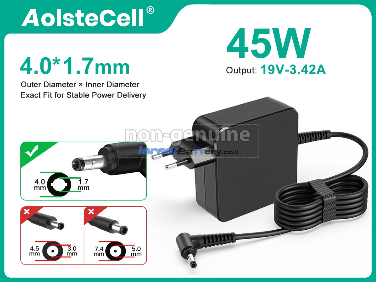 כדי לוודא שהמתאם הזה תואם למכשיר שלך, יש לבדוק אם המתח (V), הזרם (A) וגודל המחבר תואמים את המפרט של המתאם שלנו. בדרך כלל, על המתאם יופיעו פרמטרי היציאה, כגון 20V-2.25A.
