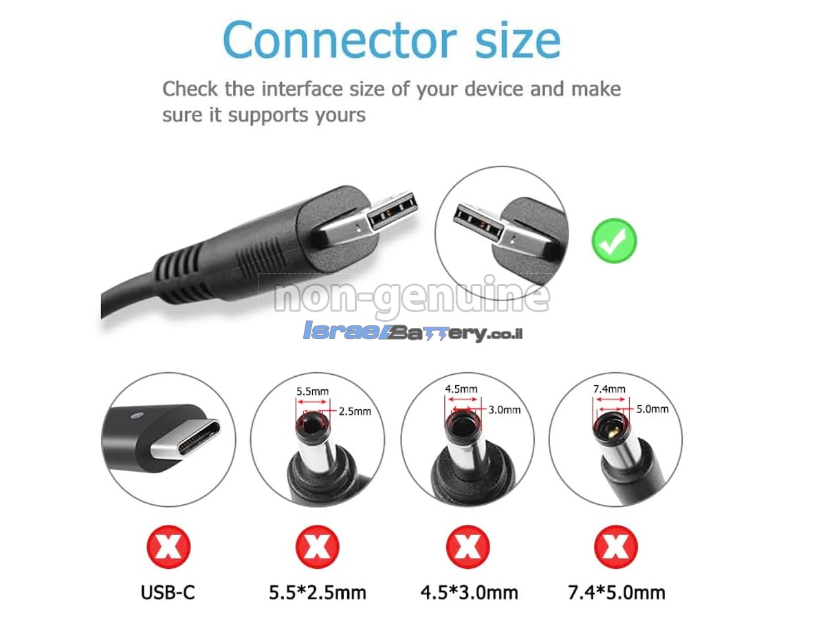 כדי לוודא שהמתאם הזה תואם למכשיר שלך, יש לבדוק אם המתח (V), הזרם (A) וגודל המחבר תואמים את המפרט של המתאם שלנו. בדרך כלל, על המתאם יופיעו פרמטרי היציאה, כגון 20V-12A.