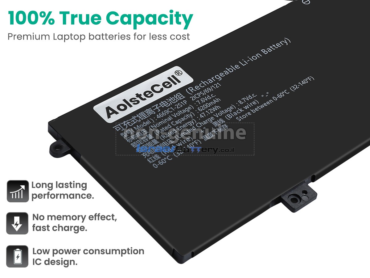 כל הסוללות AolsteCell 4669C1-2S1P שמוצעות למכירה על ידי israelbattery.co.il הן סוללות חלופיות OEM חדשות לחלוטין, ולא סוללות מקוריות. למעשה, הסוללות שלנו משתמשות בתאי סוללה ובמעגלי חכמה מהמותגים הגדולים הזמינים בשוק, והן יכולות אפילו להיות יותר טובות מסוללות המקור. ברכישת סוללות באותה איכות במחיר נמוך יותר, תוכלו לא רק לחסוך בפרמיה של המותג, אלא גם להבטיח את איכות המצבר.