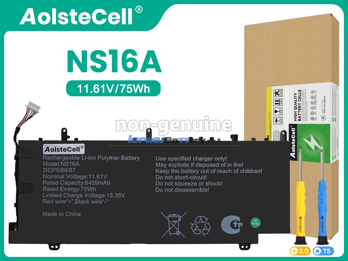 סוללת AolsteCell NS16A מאמצת תא סוללה מיובא חדש לגמרי, עם איכות אמינה, ביצועים יציבים וחיי שירות ארוכים יותר. בנוסף, סוללה חלופית AolsteCell NS16A מיוצר ב-1:1 בהתאם לצורת הסוללה המקורית, והוא עשוי מחומרי סגסוגת ABS+PC ידידותיים לסביבה עמידים בפני טמפרטורה גבוהה ועמידים בפני שחיקה, שיכולים להתאים למחשב הנייד שלך 100%.