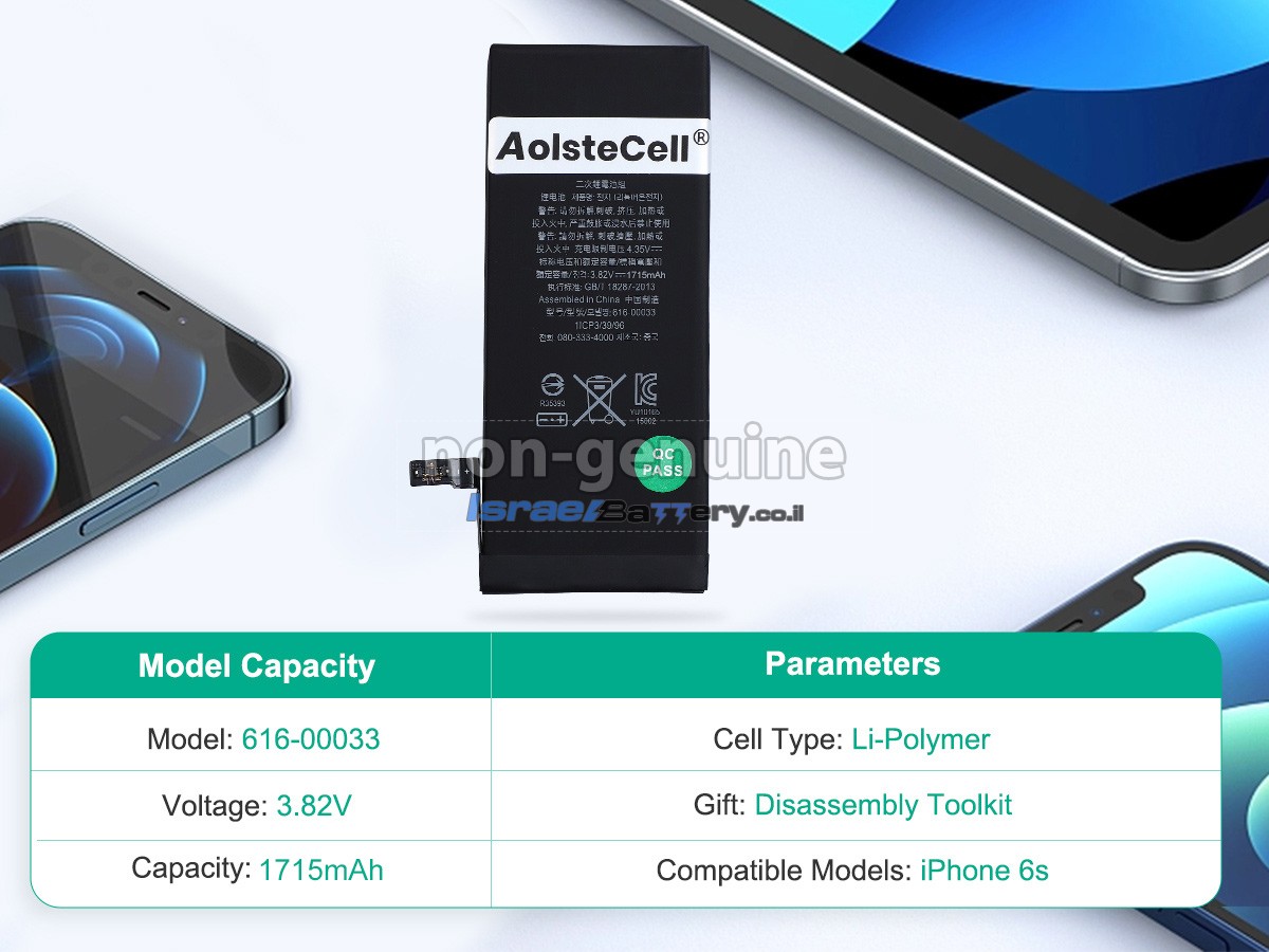כל הסוללות Apple 616-00033 שמוצעות למכירה על ידי israelbattery.co.il הן סוללות חלופיות OEM חדשות לחלוטין, ולא סוללות מקוריות. למעשה, הסוללות שלנו משתמשות בתאי סוללה ובמעגלי חכמה מהמותגים הגדולים הזמינים בשוק, והן יכולות אפילו להיות יותר טובות מסוללות המקור. ברכישת סוללות באותה איכות במחיר נמוך יותר, תוכלו לא רק לחסוך בפרמיה של המותג, אלא גם להבטיח את איכות המצבר.