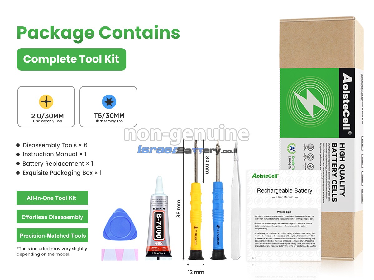 כל הסוללות Apple A2857 שמוצעות למכירה על ידי israelbattery.co.il הן סוללות חלופיות OEM חדשות לחלוטין, ולא סוללות מקוריות. למעשה, הסוללות שלנו משתמשות בתאי סוללה ובמעגלי חכמה מהמותגים הגדולים הזמינים בשוק, והן יכולות אפילו להיות יותר טובות מסוללות המקור. ברכישת סוללות באותה איכות במחיר נמוך יותר, תוכלו לא רק לחסוך בפרמיה של המותג, אלא גם להבטיח את איכות המצבר.