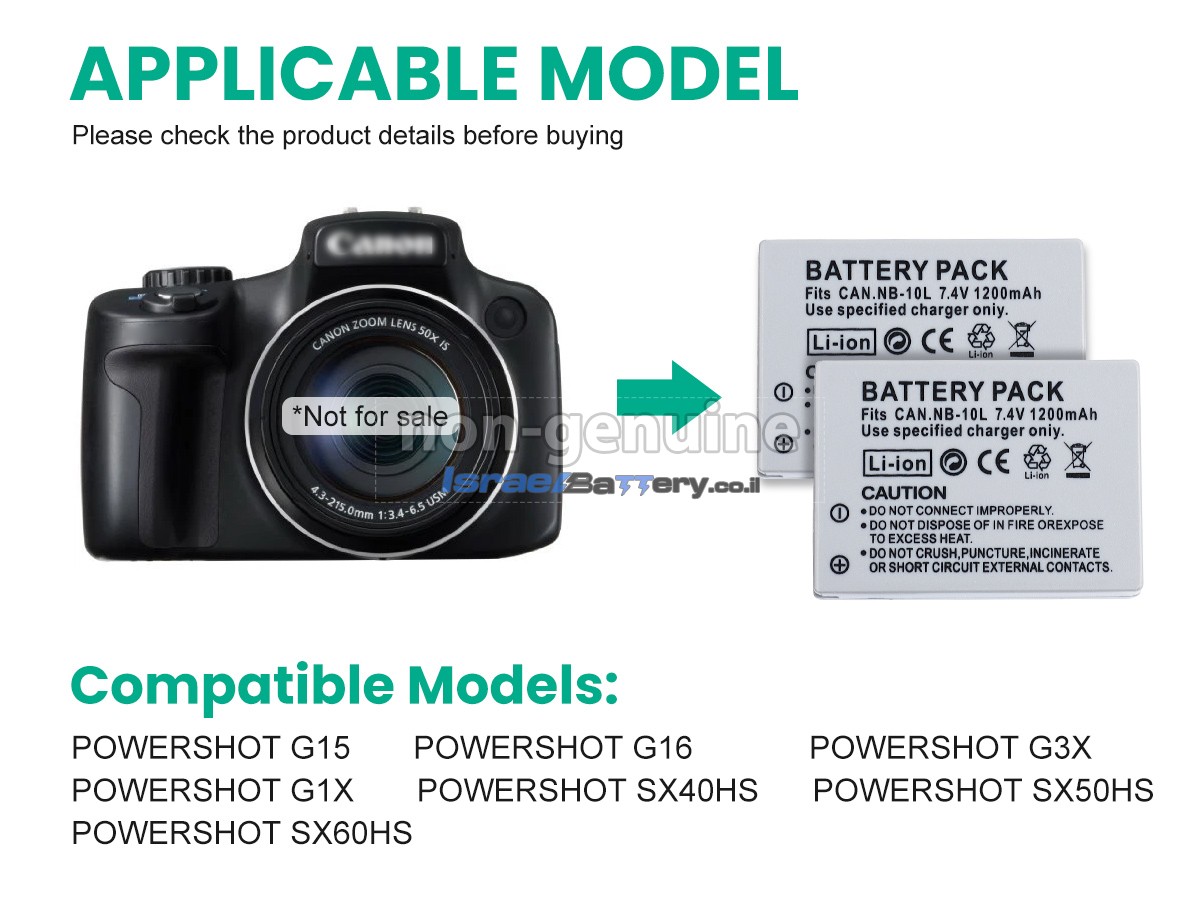 כל הסוללות Canon POWERSHOT SX40HS שמוצעות למכירה על ידי israelbattery.co.il הן סוללות חלופיות OEM חדשות לחלוטין, ולא סוללות מקוריות. למעשה, הסוללות שלנו משתמשות בתאי סוללה ובמעגלי חכמה מהמותגים הגדולים הזמינים בשוק, והן יכולות אפילו להיות יותר טובות מסוללות המקור. ברכישת סוללות באותה איכות במחיר נמוך יותר, תוכלו לא רק לחסוך בפרמיה של המותג, אלא גם להבטיח את איכות המצבר.