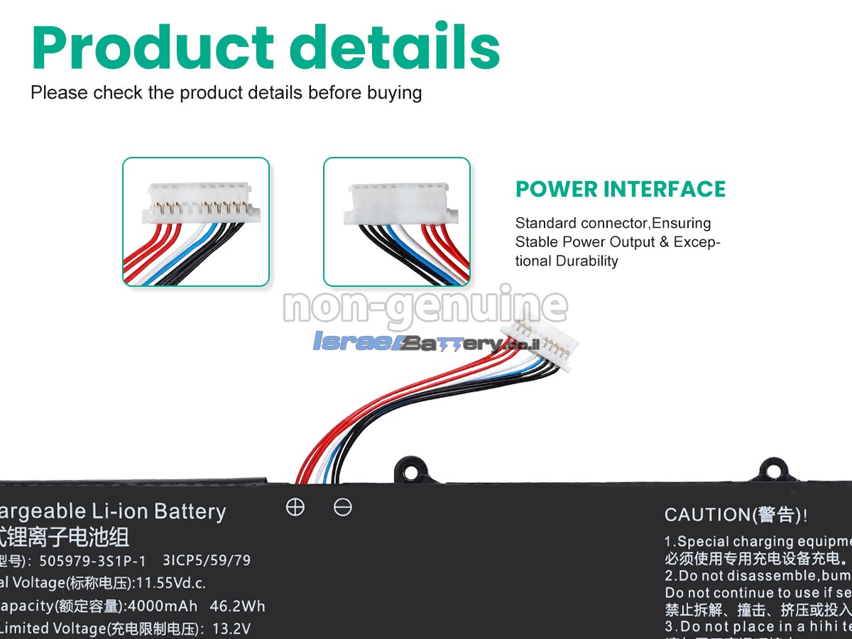 סוללות נחותות עם ביצועים לא יציבים עלולות להוות איום על המחשב הנייד ועל בטיחותך. כל אחת מהסוללות החלופיות CHUWI 505979-3S1P-1 שלנו עברה בדיקות קפדניות ואישורי בטיחות בינלאומיים מרובים, כגון CE, UL, ROH, SII וכו '. אנו שולטים באיכות החומר מהמקור ומבטיחים את היציבות והבטיחות של הסוללות על ידי אופטימיזציה של תהליכי הייצור. אנו מחויבים לספק לכם סוללות באיכות גבוהה כדי להבטיח את בטיחותכם וחוויית המשתמש שלכם, אז תהיו בטוחים לרכוש את סוללת CHUWI 505979-3S1P-1 האיכותיות שלנו.