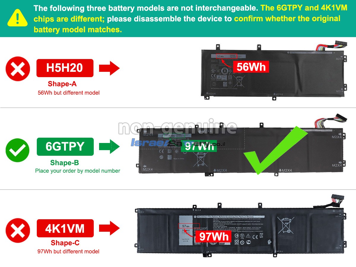 כל הסוללות Dell P102F003 שמוצעות למכירה על ידי israelbattery.co.il הן סוללות חלופיות OEM חדשות לחלוטין, ולא סוללות מקוריות. למעשה, הסוללות שלנו משתמשות בתאי סוללה ובמעגלי חכמה מהמותגים הגדולים הזמינים בשוק, והן יכולות אפילו להיות יותר טובות מסוללות המקור. ברכישת סוללות באותה איכות במחיר נמוך יותר, תוכלו לא רק לחסוך בפרמיה של המותג, אלא גם להבטיח את איכות המצבר.