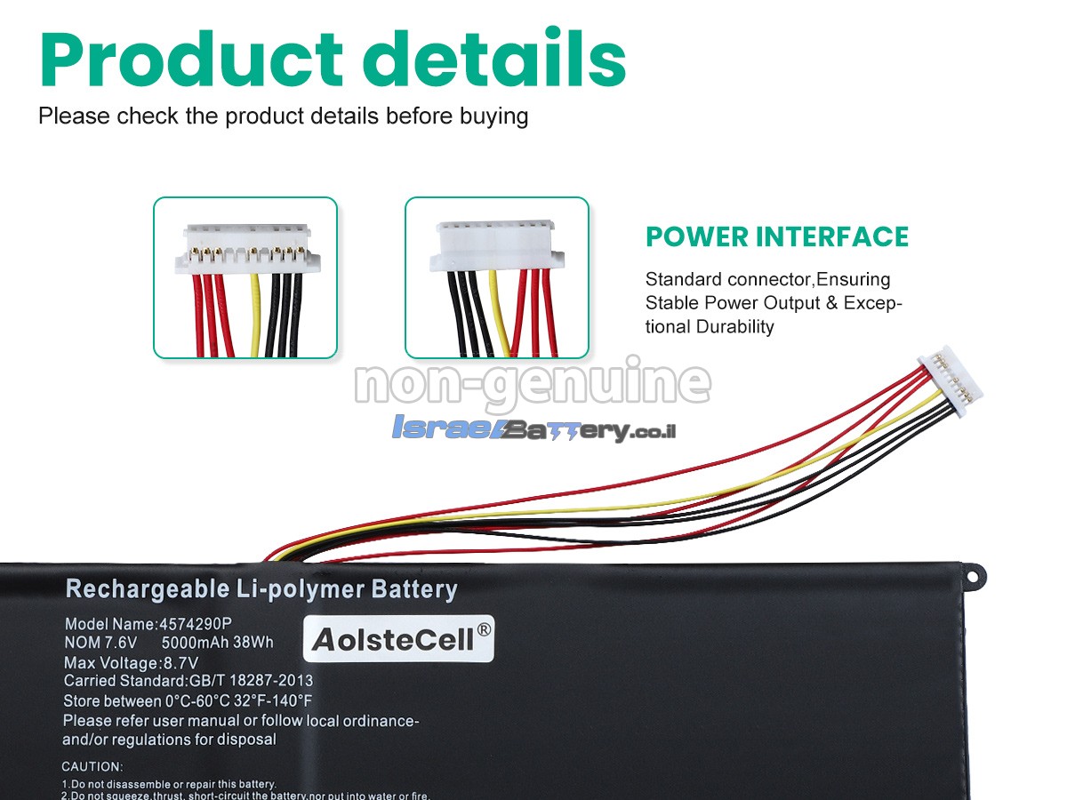 סוללת DIGMA H-8070145P מאמצת תא סוללה מיובא חדש לגמרי, עם איכות אמינה, ביצועים יציבים וחיי שירות ארוכים יותר. בנוסף, סוללה חלופית DIGMA H-8070145P מיוצר ב-1:1 בהתאם לצורת הסוללה המקורית, והוא עשוי מחומרי סגסוגת ABS+PC ידידותיים לסביבה עמידים בפני טמפרטורה גבוהה ועמידים בפני שחיקה, שיכולים להתאים למחשב הנייד שלך 100%.