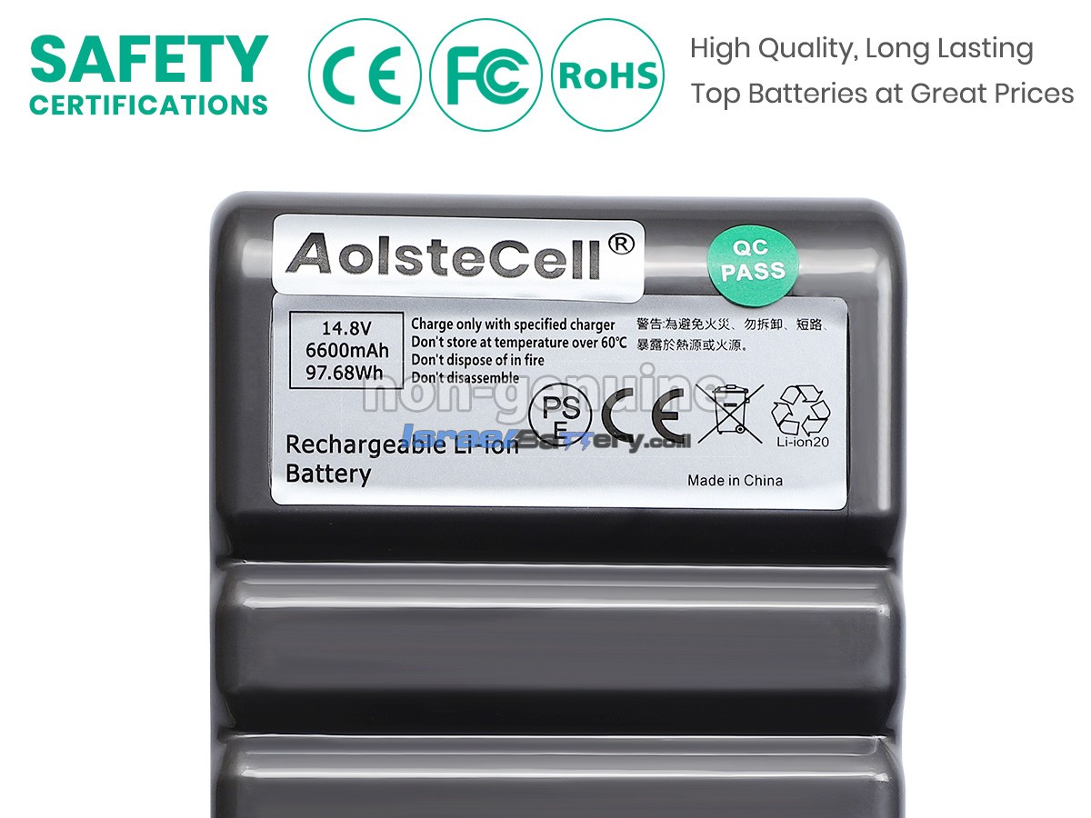 סוללות נחותות עם ביצועים לא יציבים עלולות להוות איום על שואב אבק ועל בטיחותך. כל אחת מהסוללות החלופיות Dyson 360 HEURIST שלנו עברה בדיקות קפדניות ואישורי בטיחות בינלאומיים מרובים, כגון CE, UL, ROH, SII וכו '. אנו שולטים באיכות החומר מהמקור ומבטיחים את היציבות והבטיחות של הסוללות על ידי אופטימיזציה של תהליכי הייצור. אנו מחויבים לספק לכם סוללות באיכות גבוהה כדי להבטיח את בטיחותכם וחוויית המשתמש שלכם, אז תהיו בטוחים לרכוש את סוללת Dyson 360 HEURIST האיכותיות שלנו.