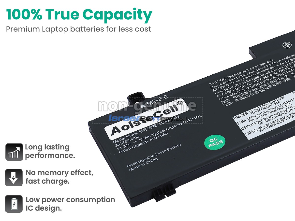 כל הסוללות Lenovo L23B3PG2 שמוצעות למכירה על ידי israelbattery.co.il הן סוללות חלופיות OEM חדשות לחלוטין, ולא סוללות מקוריות. למעשה, הסוללות שלנו משתמשות בתאי סוללה ובמעגלי חכמה מהמותגים הגדולים הזמינים בשוק, והן יכולות אפילו להיות יותר טובות מסוללות המקור. ברכישת סוללות באותה איכות במחיר נמוך יותר, תוכלו לא רק לחסוך בפרמיה של המותג, אלא גם להבטיח את איכות המצבר.