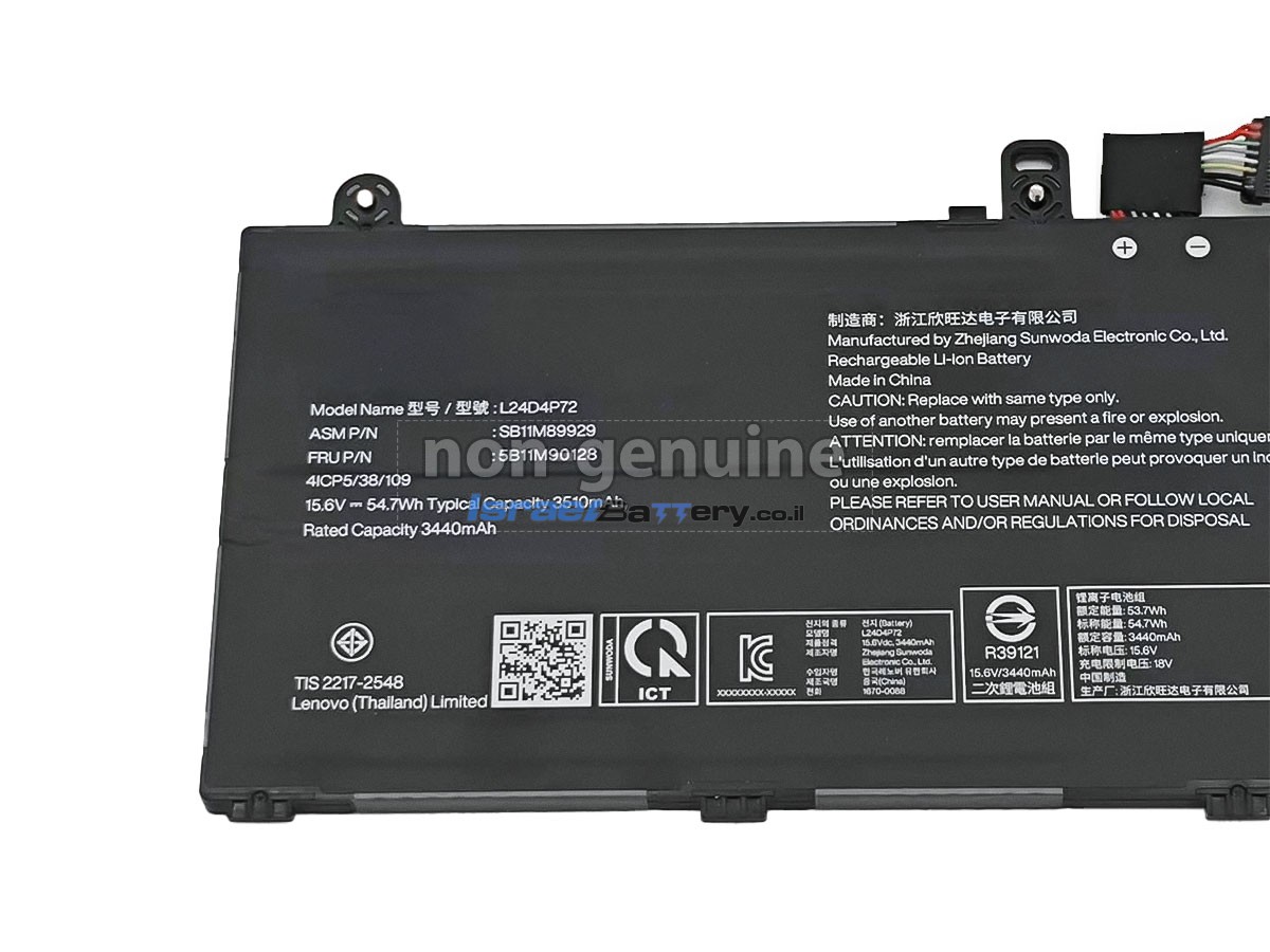 כל הסוללות Lenovo L24C4P72 שמוצעות למכירה על ידי israelbattery.co.il הן סוללות חלופיות OEM חדשות לחלוטין, ולא סוללות מקוריות. למעשה, הסוללות שלנו משתמשות בתאי סוללה ובמעגלי חכמה מהמותגים הגדולים הזמינים בשוק, והן יכולות אפילו להיות יותר טובות מסוללות המקור. ברכישת סוללות באותה איכות במחיר נמוך יותר, תוכלו לא רק לחסוך בפרמיה של המותג, אלא גם להבטיח את איכות המצבר.