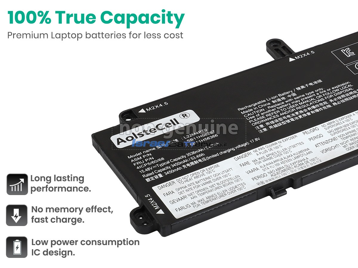 כל הסוללות Lenovo SB11H56270 שמוצעות למכירה על ידי israelbattery.co.il הן סוללות חלופיות OEM חדשות לחלוטין, ולא סוללות מקוריות. למעשה, הסוללות שלנו משתמשות בתאי סוללה ובמעגלי חכמה מהמותגים הגדולים הזמינים בשוק, והן יכולות אפילו להיות יותר טובות מסוללות המקור. ברכישת סוללות באותה איכות במחיר נמוך יותר, תוכלו לא רק לחסוך בפרמיה של המותג, אלא גם להבטיח את איכות המצבר.