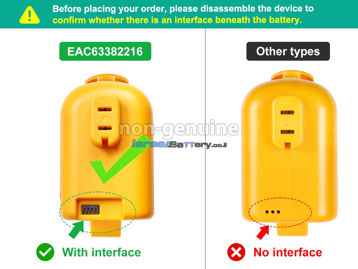 סוללת LG O920BWE מאמצת תא סוללה מיובא חדש לגמרי, עם איכות אמינה, ביצועים יציבים וחיי שירות ארוכים יותר. בנוסף, סוללה חלופית LG O920BWE מיוצר ב-1:1 בהתאם לצורת הסוללה המקורית, והוא עשוי מחומרי סגסוגת ABS+PC ידידותיים לסביבה עמידים בפני טמפרטורה גבוהה ועמידים בפני שחיקה, שיכולים להתאים שואב אבק שלך 100%.