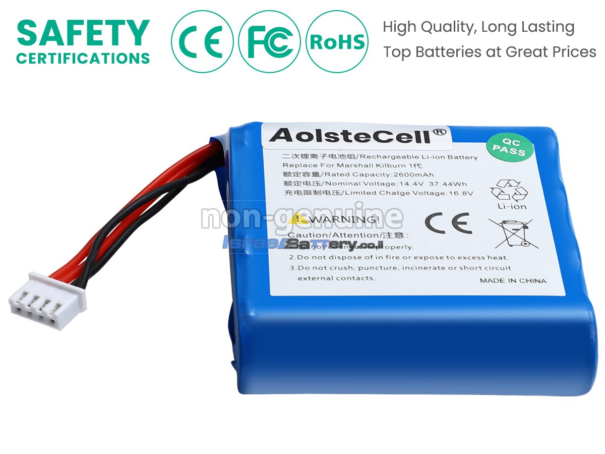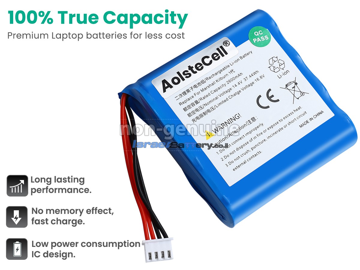 כל הסוללות Marshall TF18650-2200-1S4PA שמוצעות למכירה על ידי israelbattery.co.il הן סוללות חלופיות OEM חדשות לחלוטין, ולא סוללות מקוריות. למעשה, הסוללות שלנו משתמשות בתאי סוללה ובמעגלי חכמה מהמותגים הגדולים הזמינים בשוק, והן יכולות אפילו להיות יותר טובות מסוללות המקור. ברכישת סוללות באותה איכות במחיר נמוך יותר, תוכלו לא רק לחסוך בפרמיה של המותג, אלא גם להבטיח את איכות המצבר.