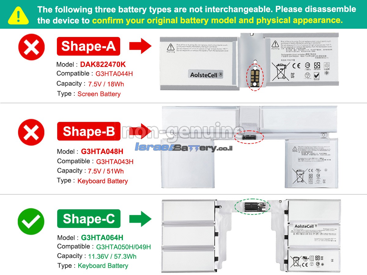 כל הסוללות Microsoft Surface BOOK 2 1832 שמוצעות למכירה על ידי israelbattery.co.il הן סוללות חלופיות OEM חדשות לחלוטין, ולא סוללות מקוריות. למעשה, הסוללות שלנו משתמשות בתאי סוללה ובמעגלי חכמה מהמותגים הגדולים הזמינים בשוק, והן יכולות אפילו להיות יותר טובות מסוללות המקור. ברכישת סוללות באותה איכות במחיר נמוך יותר, תוכלו לא רק לחסוך בפרמיה של המותג, אלא גם להבטיח את איכות המצבר.