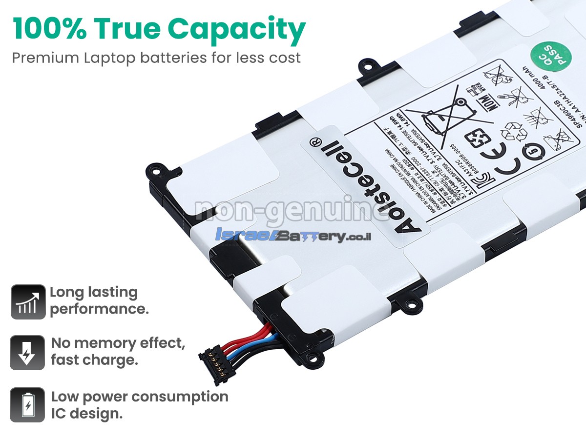 כל הסוללות Samsung Galaxy TAB P6200 שמוצעות למכירה על ידי israelbattery.co.il הן סוללות חלופיות OEM חדשות לחלוטין, ולא סוללות מקוריות. למעשה, הסוללות שלנו משתמשות בתאי סוללה ובמעגלי חכמה מהמותגים הגדולים הזמינים בשוק, והן יכולות אפילו להיות יותר טובות מסוללות המקור. ברכישת סוללות באותה איכות במחיר נמוך יותר, תוכלו לא רק לחסוך בפרמיה של המותג, אלא גם להבטיח את איכות המצבר.