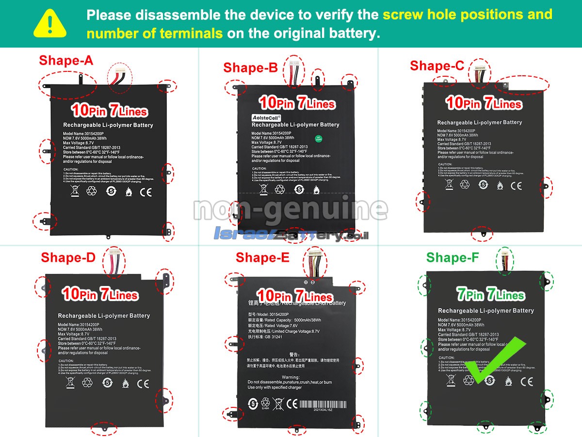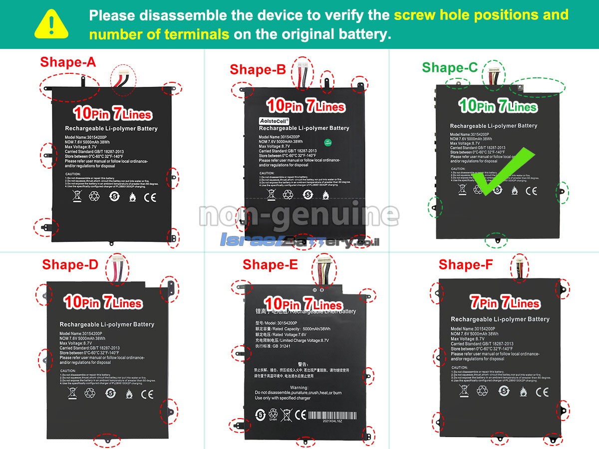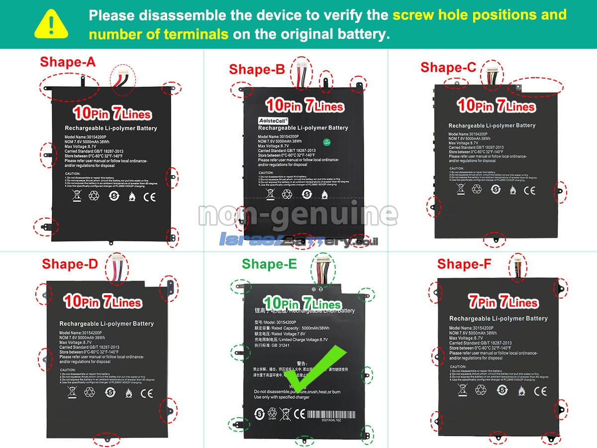 כל הסוללות Teclast 30154200P שמוצעות למכירה על ידי israelbattery.co.il הן סוללות חלופיות OEM חדשות לחלוטין, ולא סוללות מקוריות. למעשה, הסוללות שלנו משתמשות בתאי סוללה ובמעגלי חכמה מהמותגים הגדולים הזמינים בשוק, והן יכולות אפילו להיות יותר טובות מסוללות המקור. ברכישת סוללות באותה איכות במחיר נמוך יותר, תוכלו לא רק לחסוך בפרמיה של המותג, אלא גם להבטיח את איכות המצבר.