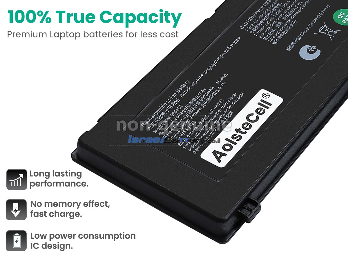 כל הסוללות Thunderobot 5954C2 שמוצעות למכירה על ידי israelbattery.co.il הן סוללות חלופיות OEM חדשות לחלוטין, ולא סוללות מקוריות. למעשה, הסוללות שלנו משתמשות בתאי סוללה ובמעגלי חכמה מהמותגים הגדולים הזמינים בשוק, והן יכולות אפילו להיות יותר טובות מסוללות המקור. ברכישת סוללות באותה איכות במחיר נמוך יותר, תוכלו לא רק לחסוך בפרמיה של המותג, אלא גם להבטיח את איכות המצבר.