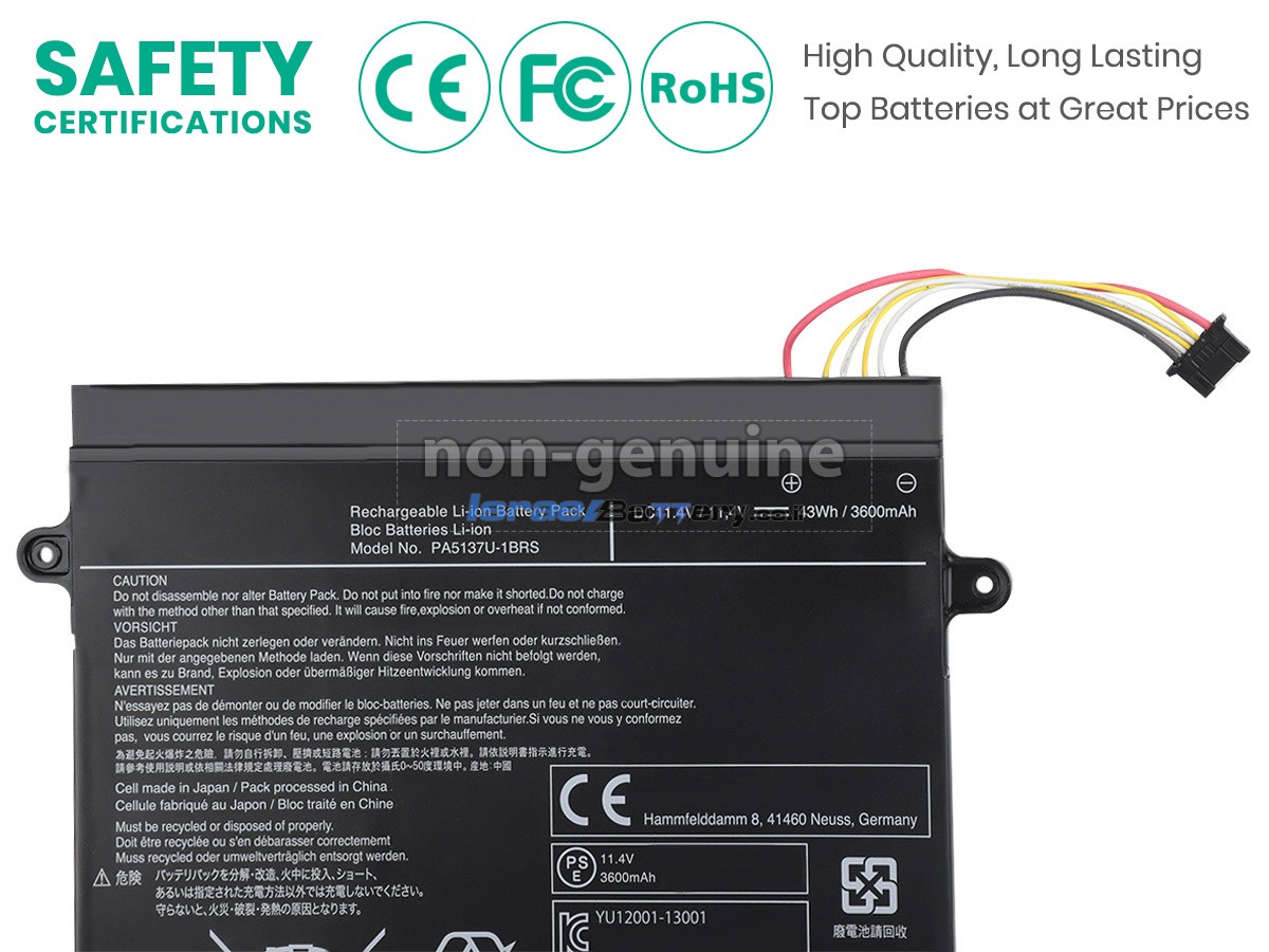 סוללות נחותות עם ביצועים לא יציבים עלולות להוות איום על המחשב הנייד ועל בטיחותך. כל אחת מהסוללות החלופיות Toshiba Portege Z10T-A1102L שלנו עברה בדיקות קפדניות ואישורי בטיחות בינלאומיים מרובים, כגון CE, UL, ROH, SII וכו '. אנו שולטים באיכות החומר מהמקור ומבטיחים את היציבות והבטיחות של הסוללות על ידי אופטימיזציה של תהליכי הייצור. אנו מחויבים לספק לכם סוללות באיכות גבוהה כדי להבטיח את בטיחותכם וחוויית המשתמש שלכם, אז תהיו בטוחים לרכוש את סוללת Toshiba Portege Z10T-A1102L האיכותיות שלנו.